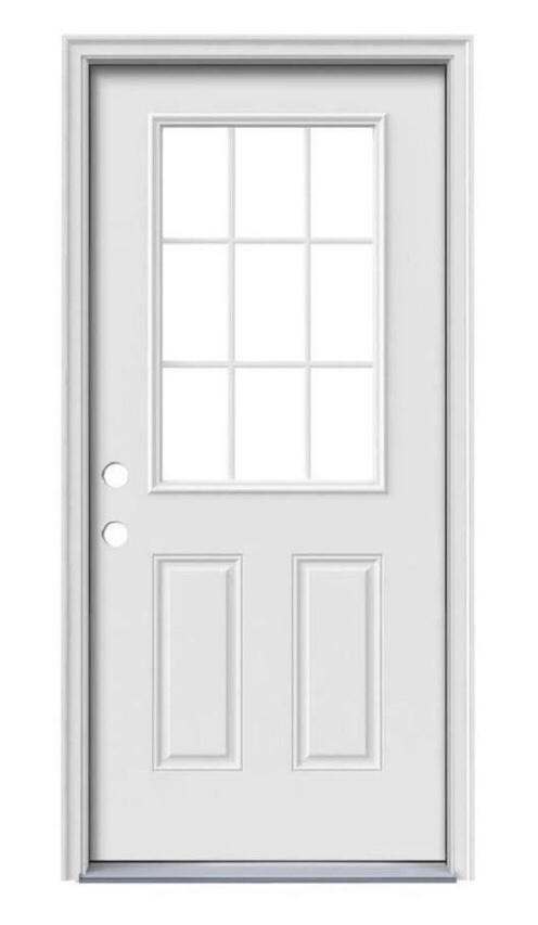 We keep in stock a range of interior and exterior doors. Our interior doors consist of primed 6-panel hollow masonite prehung doors that come in 24″, 28″, 30″, 32″, and 36″ for $120.00. Our exterior doors only come in 32″ and 36″ and consist of prehung metal doors and glass doors. We also offer french doors in 60″ and 72″. Photos below show a partial selection of our current door selection in stock.